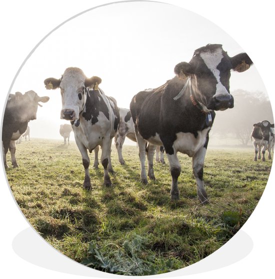 10. Wandcirkel - Muurcirkel Binnen - Koeien - Licht - Gras - ⌀ 60 cm - Wanddecoratie - Ronde Schilderijen