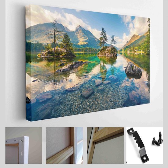 7. Een mooie zomerochtend aan de Hintersee. Kleurrijke buitenscène in de Oostenrijkse Alpen, regio Salzburg-Umgebung, Oostenrijk, Europa - Modern Art Canvas - Horizontaal - 553680274