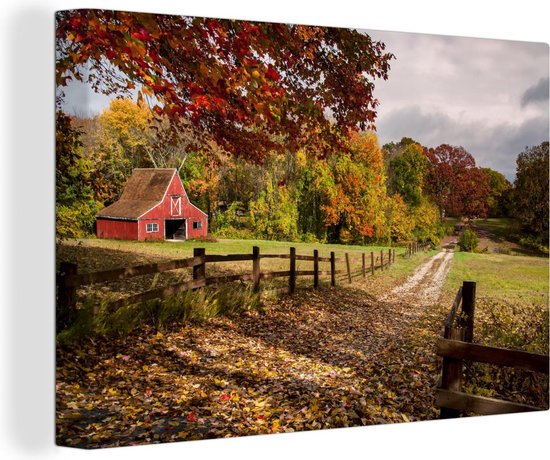 8. Canvas Schilderijen Boerderij - Herfst - Hek - 120x80 cm - Wanddecoratie