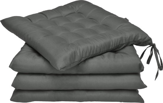10. Beautissu Lea – Stoelkussens Eetkamer 40x40 cm – Set van 4 Zitkussen met Lint Antracite