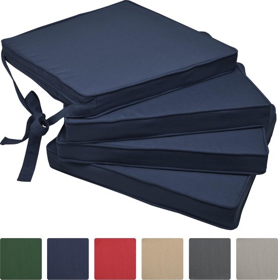 5. Beautissu Loft SK – Set van 4 Zitkussen Blauw 45x40 cm – Stoelkussen met Lint