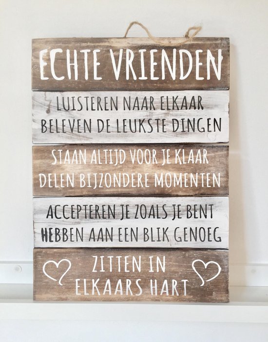 2. Wandborden ''Echte vrienden'' - Hout - Spreukbord