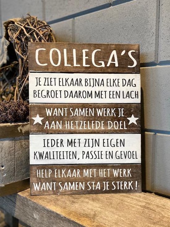 3. Tekstbord 40x30 cm collega's natural / antique white / cadeau / afscheid