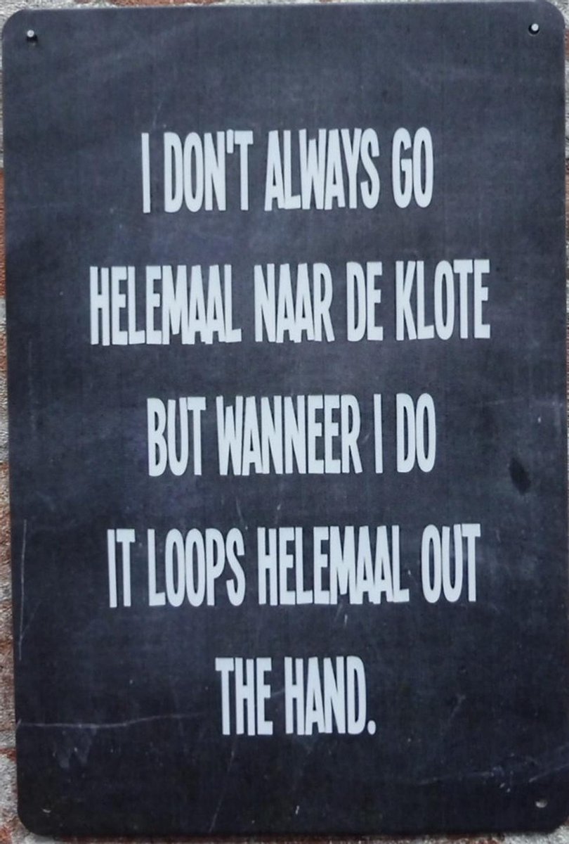 7. Wandbord – Helemaal naar de klote -Vintage Retro- Mancave - Wand Decoratie - Emaille - Reclame Bord - Tekst - Grappig - Metalen bord - Schuur - Mannen Cadeau - Bar - Café - Kamer - Tinnen bord - 20 x 30 cm - Cave & Garden - Metal sign