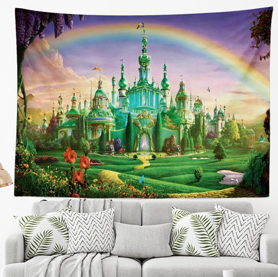 7. Ulticool - Kasteel Paleis Regenboog Sprookje - Wandkleed - 200x150 cm - Groot wandtapijt - Poster - Groen